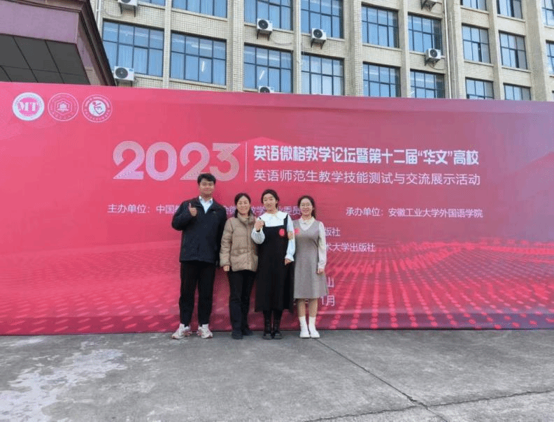 2023年11月24日至27日,由中国教育技术协会微格教学专业委员会主办、安徽工业大学承办的2023年英语微格教学论坛暨第十二届“华文杯”师范院校英语专业师范生教学技能测试与交流展示活动在安徽工业大学佳山校区顺利举行。本次比赛聚集了包括华中师范大学等全国64所高校324名本科生和研究生参赛我系英语专业学生石佳佳宋庆涛董亚璇在郭辉李伟英两位教师的精心指导下,分别教学设计能力测试教学技能测试中荣获三等奖4项、优胜奖2项。