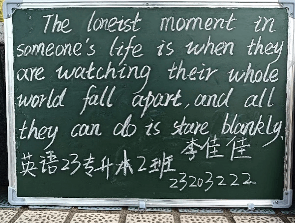 在思想者广场展出了一系列优秀的英文黑板字。小黑板上呈现出了一行行赏心悦目的粉笔字,每一笔都展现出书写者的风采。