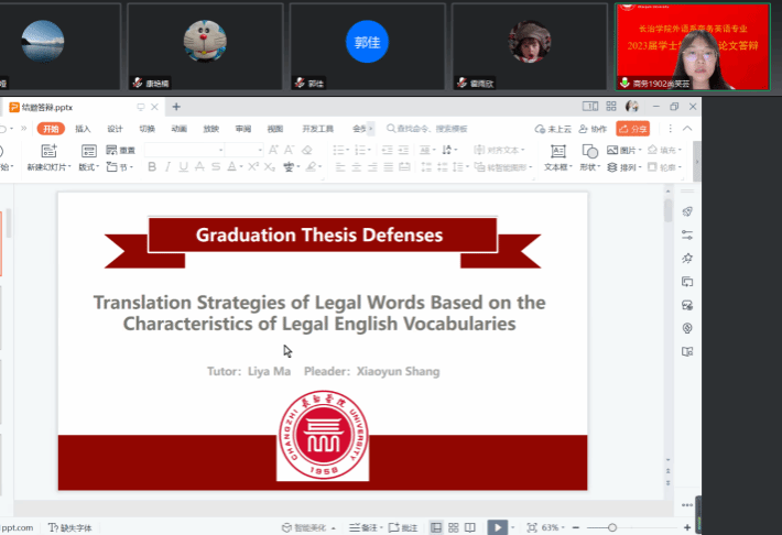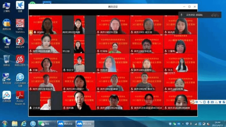 参与本次论文答辩的毕业生共234人,教师共50人,学生助理18人。考虑到商务英语专业实施“3+1”教学模式,学生正在深圳、太原等地实习,所以,本着“一切从学生利益出发”的原则,为减少因返校参加现场答辩而产生的车票、食宿等费用,该专业学生进行线上答辩。英语专业和翻译专业学生进行线下答辩。