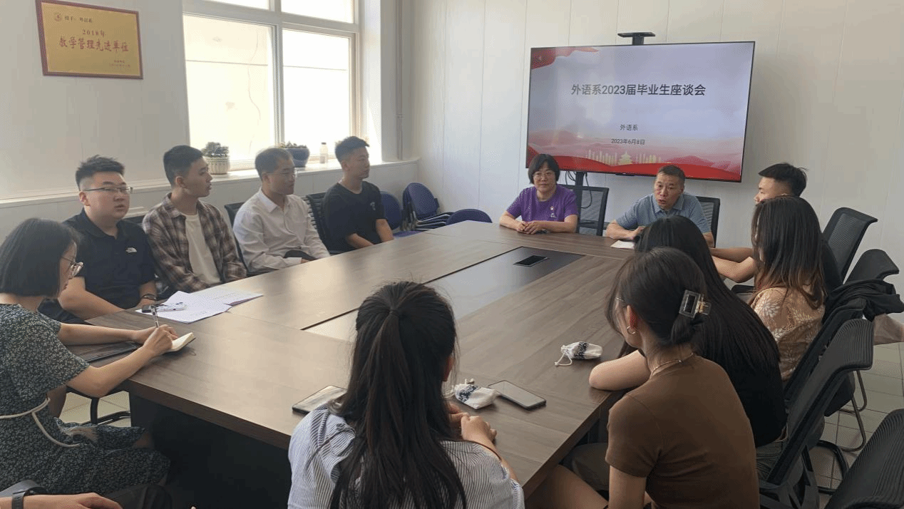 6月8日上午,必威西汉姆联在东办公楼会议室召开必威西汉姆联2023届毕业生座谈会。系党委书记晋胜利、系主任郭佳、系党委副书记张毅、系副主任马丽娅、辅导员董宁宁、李桦出席了座谈会。