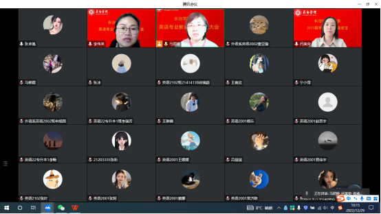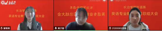 2022年12月29日上午10:00,我系在线上召开了2023届英语专业毕业生实习总结大会,为历时18周的教育实习画上了圆满的句号。教学副主任马丽娅老师主持会议,教务部副处长李伟英老师、屯留区实习带队教师马朝霞老师、英语专业负责人闫美荣老师、实习指导教师以及英语专业学生参加了会议。