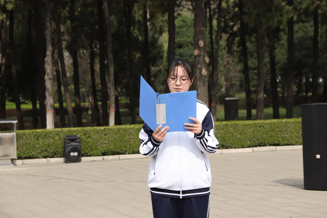 主持人胡怡文同学缅怀先烈,表达了对英雄的深切缅怀和继承烈士革命遗志的坚定信念。