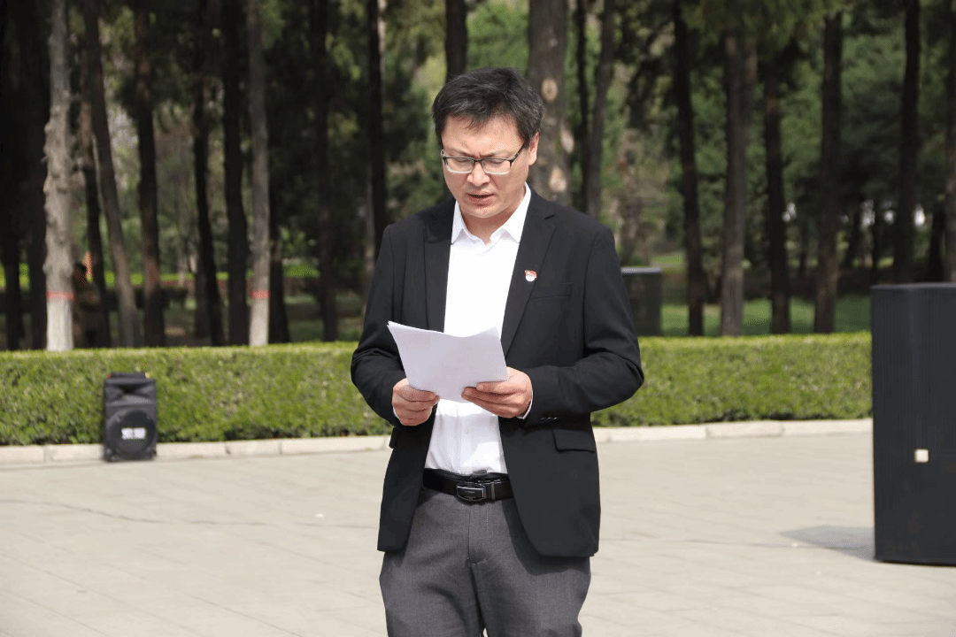 党委副书记张毅老师发言,带领同学们重温英雄烈士的英勇事迹,并呼吁同学们以自己的实际行动创造祖国美好明天。