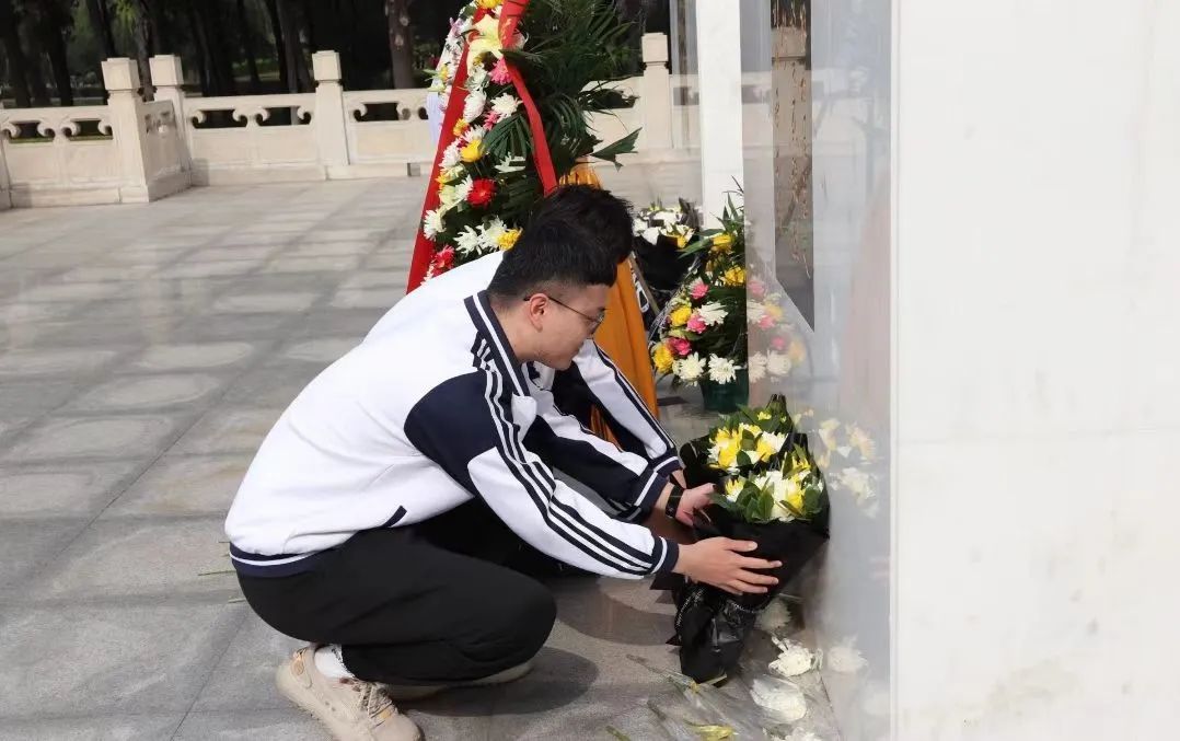 学生干部代表李少杰、杜昱杰为烈士陵敬献鲜花。