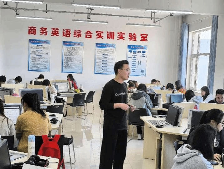 筹建有商务英语综合实训室,内配先进的电子信息教学设施及跨境电商综合实训平台、SimTrade国际贸易综合实训平台、商务英语视听说实训平台、商务英语函电实训平台、外贸单证实训平台等7个实训平台。